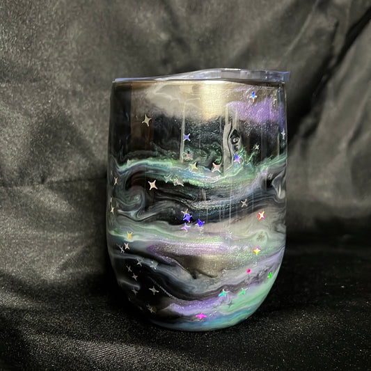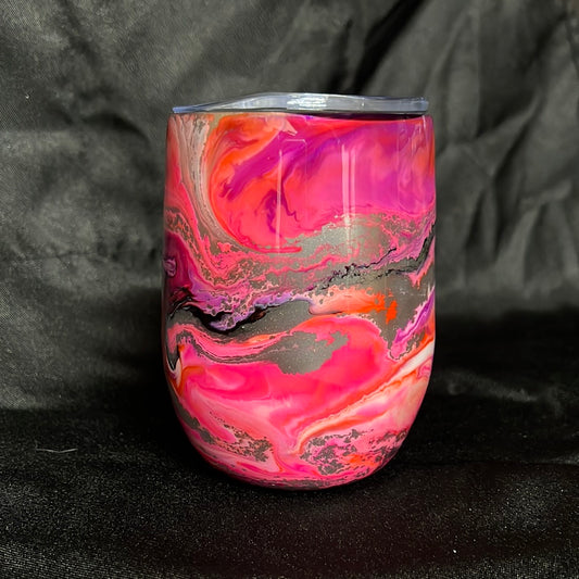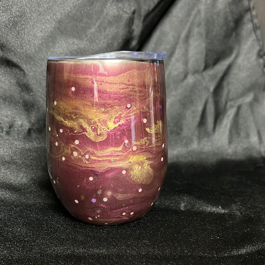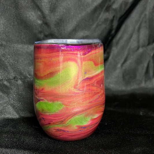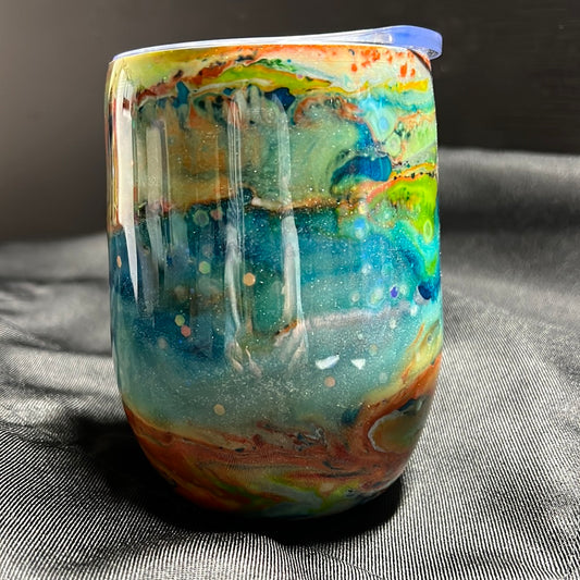 Notes about Tumblers: all tumblers are made of double walled, insulated, stainless steel. The outer coating is epoxy that has had alcohol inks added for color. The epoxy hardens to the strenght of glass but you should be aware of the following: