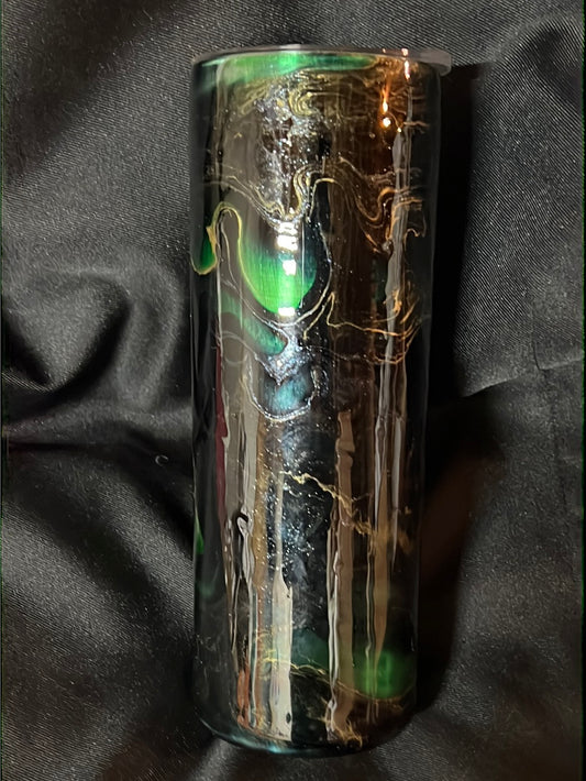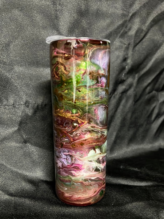 20oz Skinny Tumbler, Green/Pink Shimmer
