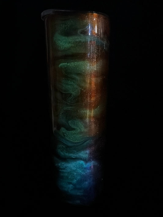 20oz Skinny Tumbler, Green/Purple/Orange/Pink Glitter